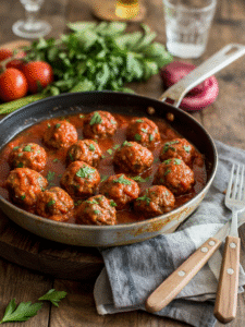 - Fleischbällchen in Tomatensoße – klassisches Familiengericht aus der Pfanne!