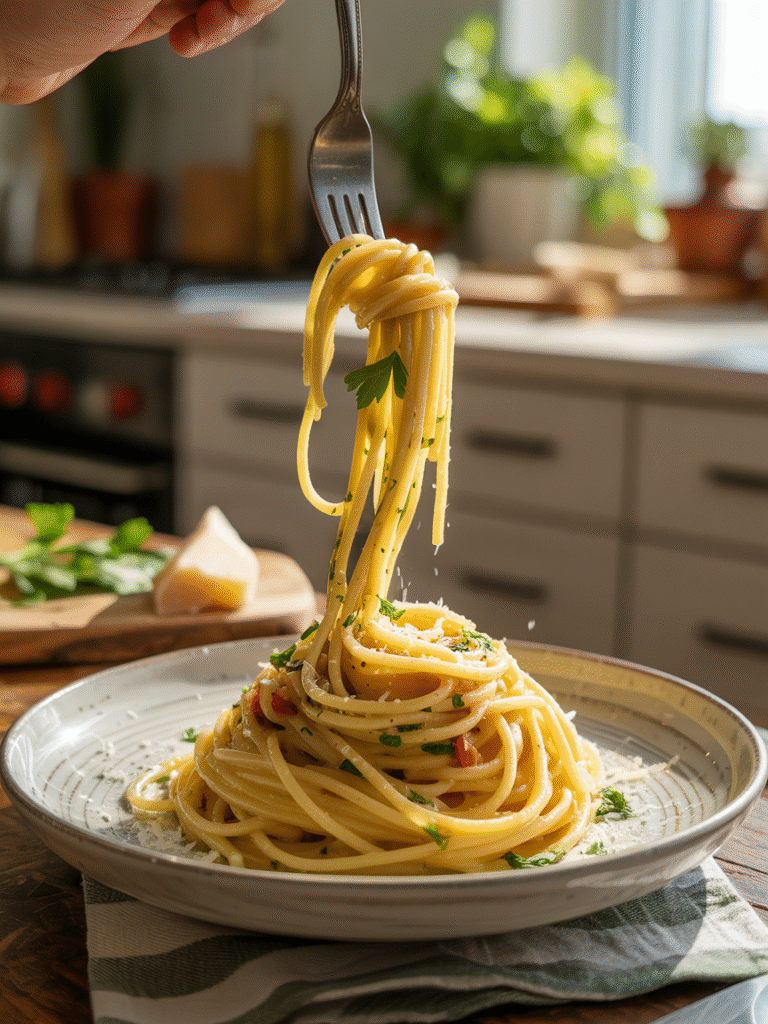 Wenn du auf der Suche nach einem Gericht bist, das in nur 10 Minuten auf dem Tisch steht, alle glücklich macht und dabei wie aus einer italienischen Trattoria schmeckt, dann ist Pasta Aglio e Olio dein Retter im Alltag. Dieses Rezept beweist: Einfache Zutaten – großer Geschmack!