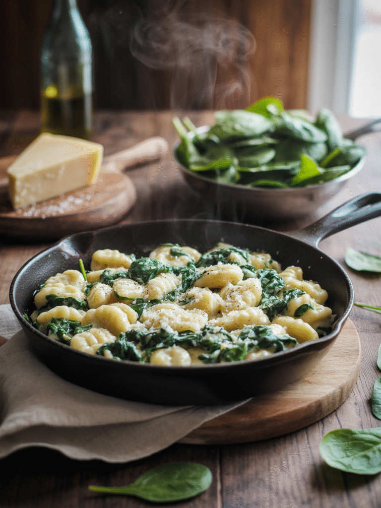 Cremige Gnocchi mit Spinat & Frischkäse – alles aus einer Pfanne