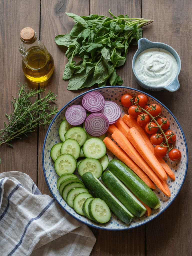 Mit frischen Kräutern, buntem Gemüse und cremigem Dip ist dieses Gericht ein echtes Wohlfühlessen – und dabei so unkompliziert!
