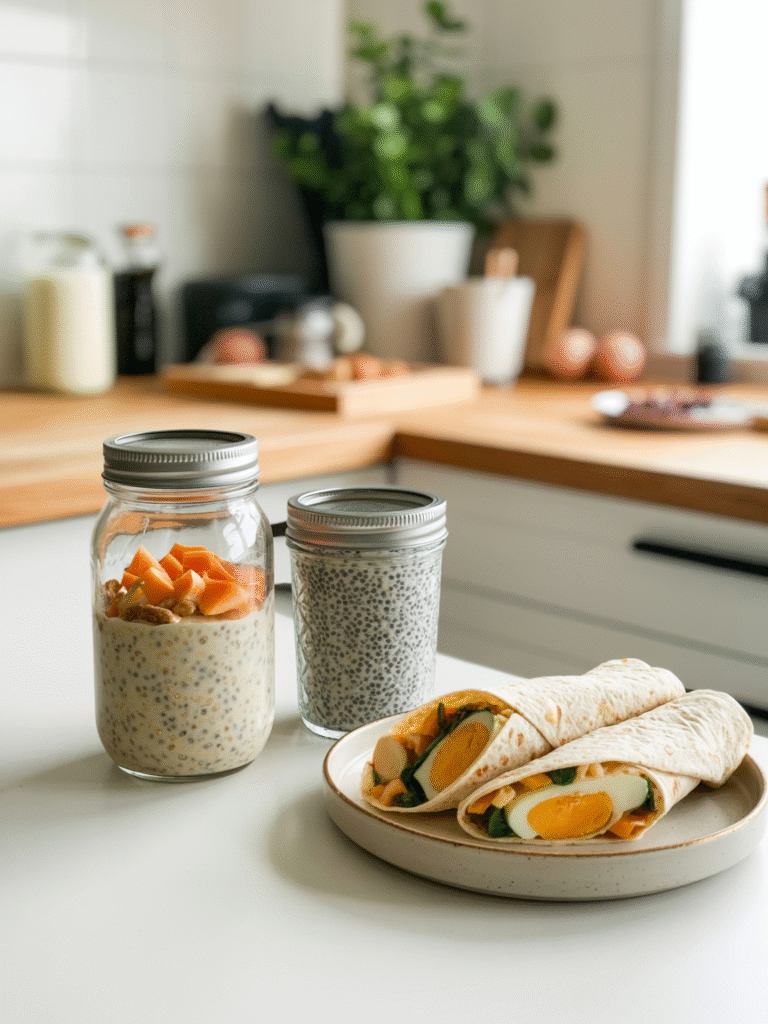 Ob Overnight Oats, Joghurt-Gläser oder Frühstücks-Wraps – hier kommen Ideen, die schnell vorbereitet, praktisch mitzunehmen und einfach köstlich sind.