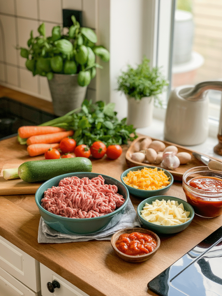 | Hackfleisch (Rind oder gemischt) | 500 g | Kräftige Basis & sättigend |