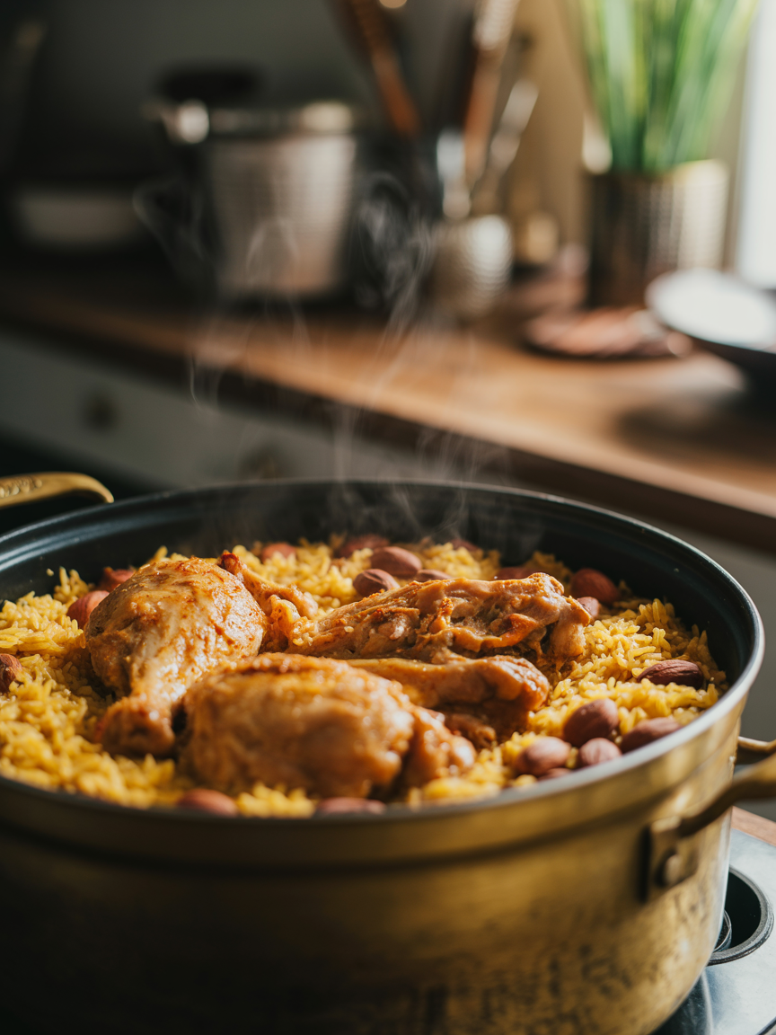 Der Duft von Kardamom, Zimt und Safran, das leise Köcheln des Reises und goldbraunes Hühnchen aus einer Pfanne voller Geschmack – das ist Kabsa, eines der bekanntesten orientalischen Reisgerichte. 🌿🍗
