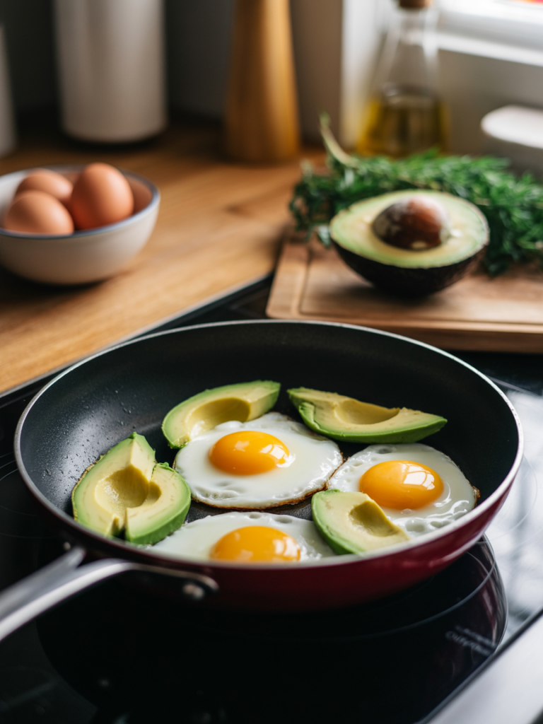 Die ketogene Ernährung lebt von einem hohen Fettanteil, moderatem Protein und sehr wenigen Kohlenhydraten. Genau diese Balance trifft die Keto Avocado-Ei-Pfanne perfekt.
