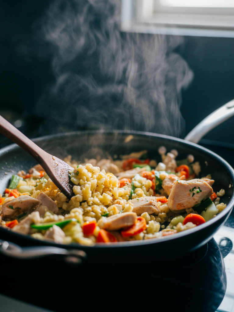 Kombiniert mit saftigem Hähnchen und buntem Gemüse entsteht ein Pfannengericht, das nicht nur Keto-tauglich ist, sondern auch richtig Spaß macht.