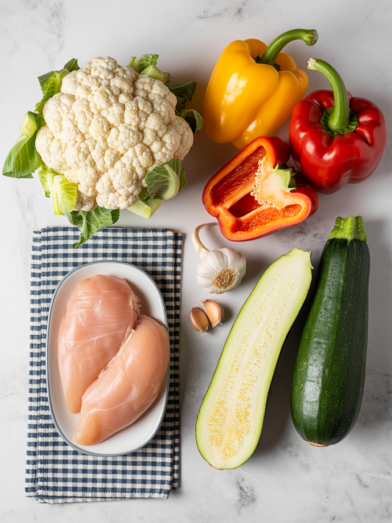 Keto Blumenkohlreis mit Hähnchen und Gemüse